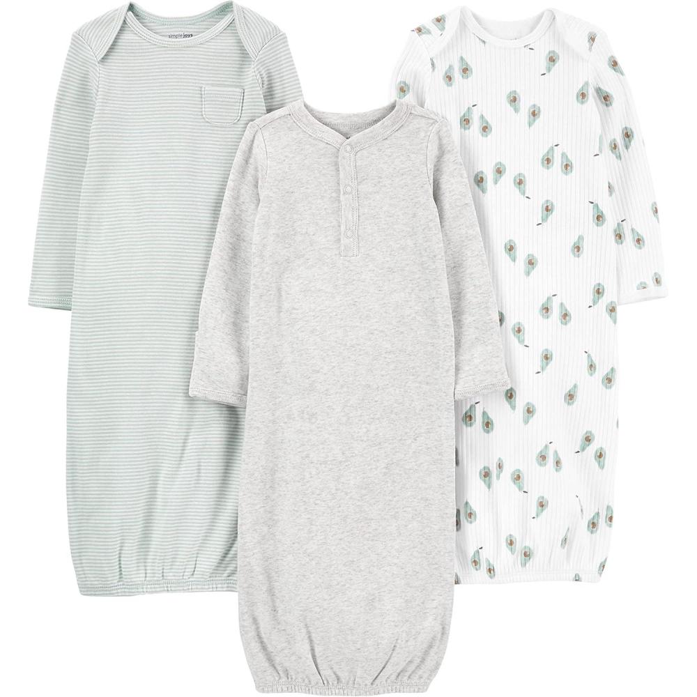 Simple Joys by Carter’s Baby 3-pack Neutral Cotton Sleeper Gown(Avocados/Heather/Stripe)