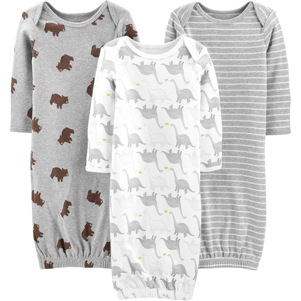 Simple Joys by Carter’s Baby 3-pack Neutral Cotton Sleeper Gown(Bear/Dinosaur/Stripe)