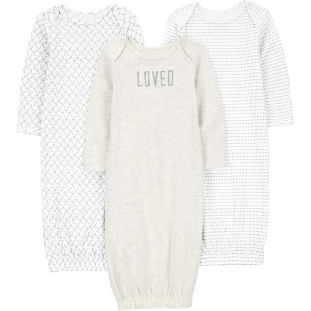 Simple Joys by Carter’s Baby 3-pack Neutral Cotton Sleeper Gown(Grey/White)
