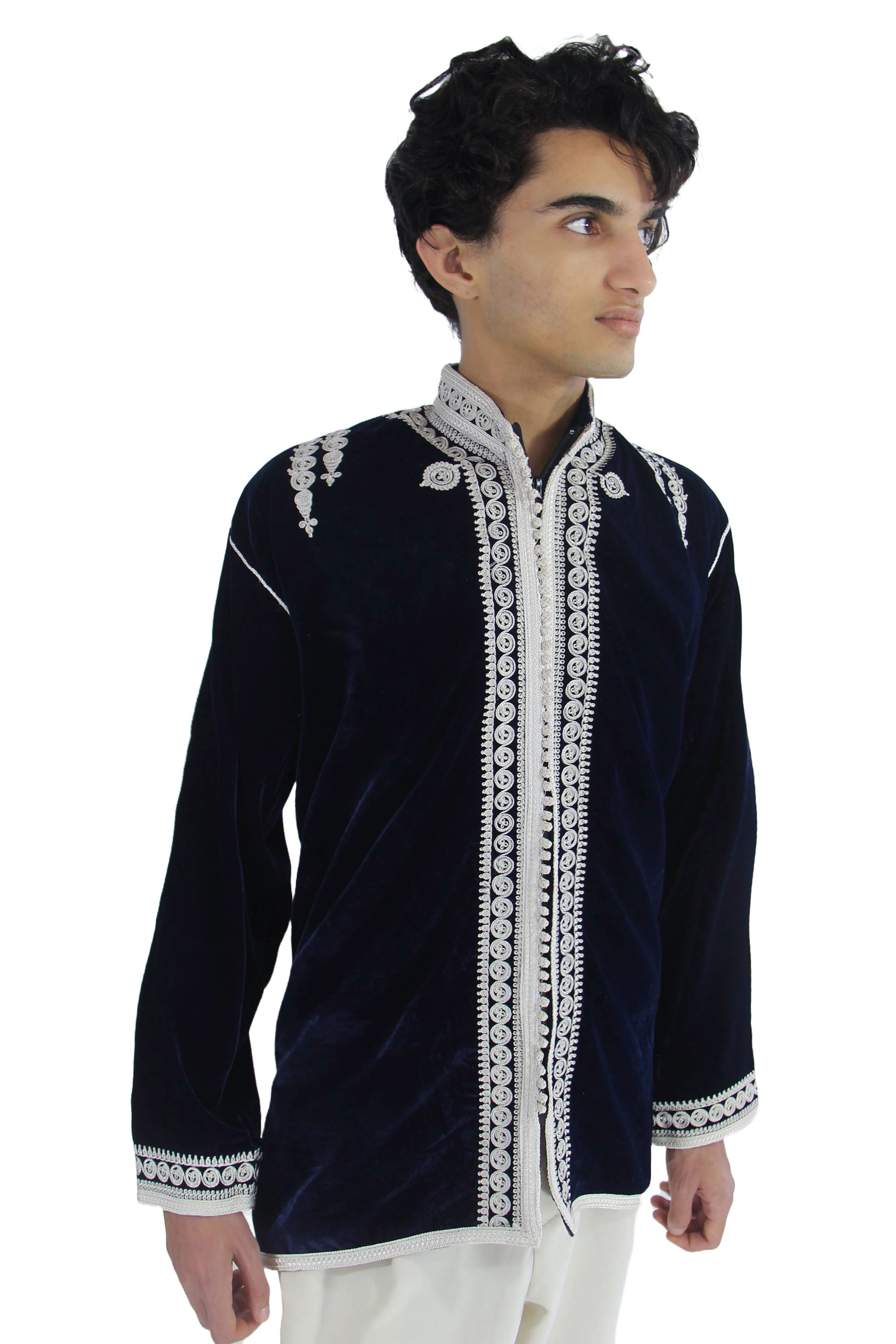 Moroccan Handmade Jacket Tunic Velvet Navy