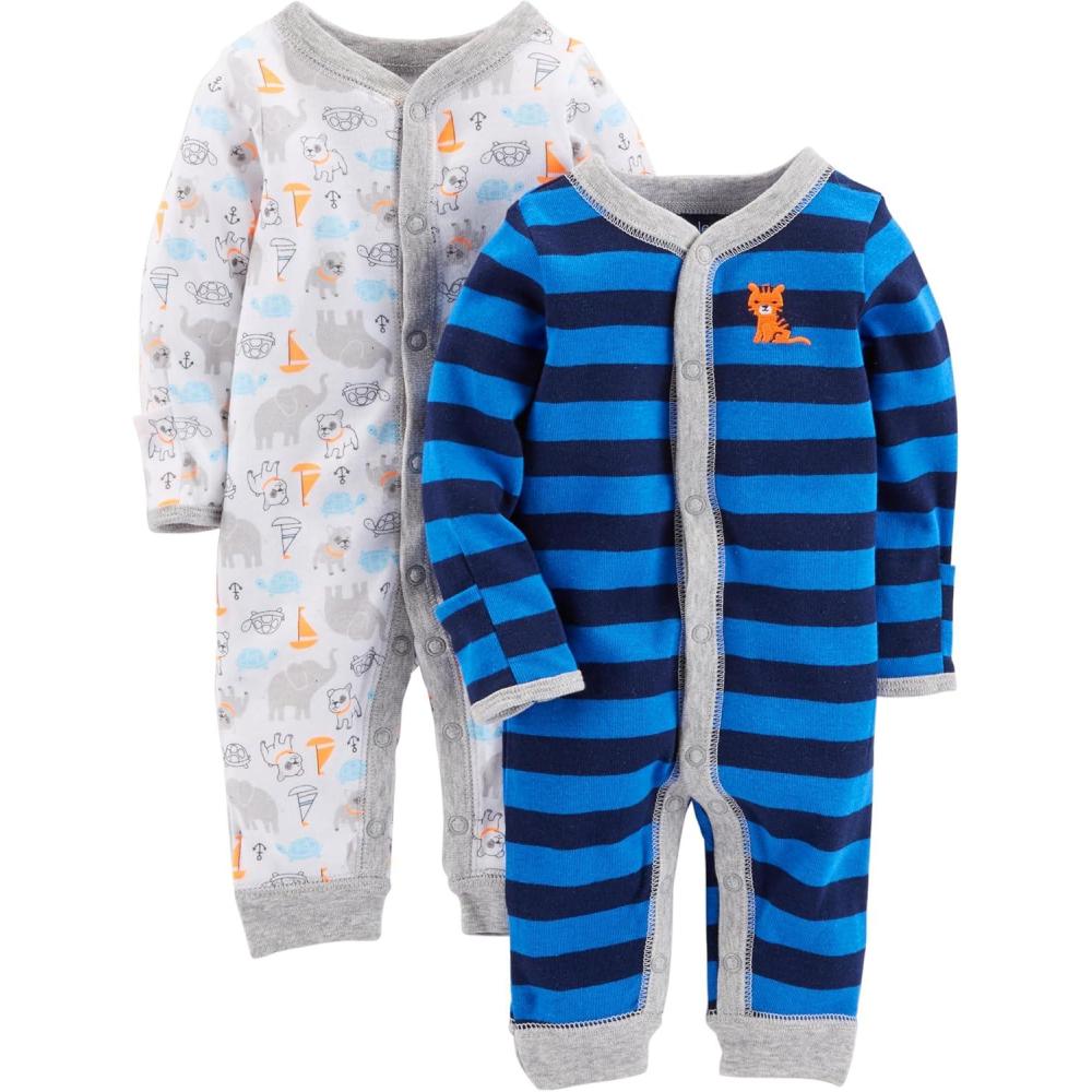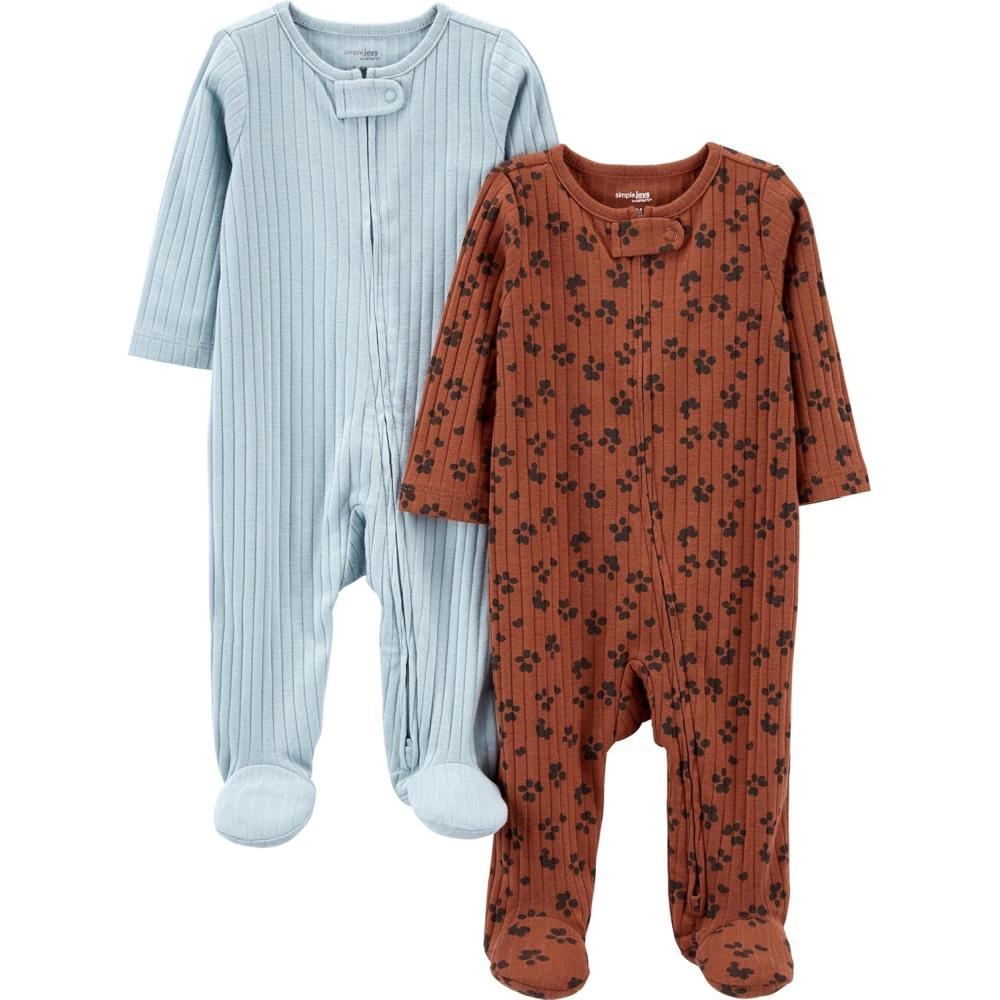 Simple Joys by Carter’s baby-boys 2-pack 2-way Zip Textured Sleep and Play(Blue/Brown Animal Print)