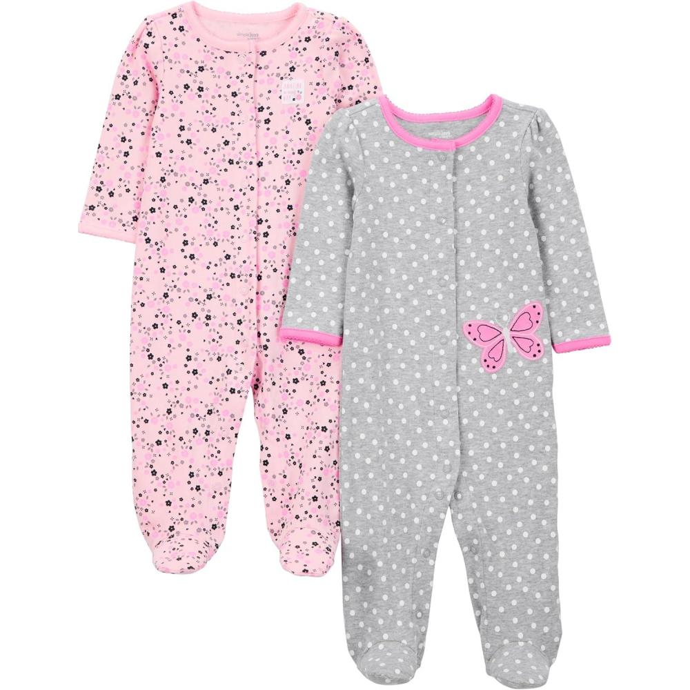 Simple Joys by Carter’s baby-girls 2-pack Cotton Snap Footed Sleep and Play(Grey Butterfly/Pink Floral)