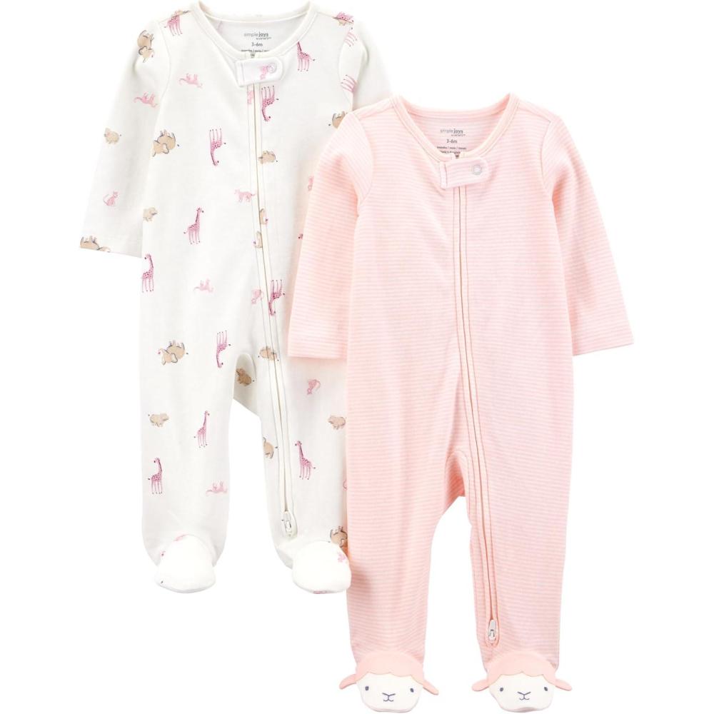 Simple Joys by Carter’s Baby Girls’ Cotton Footed Sleep and Play, Pack of 2(Pink Giraffe)