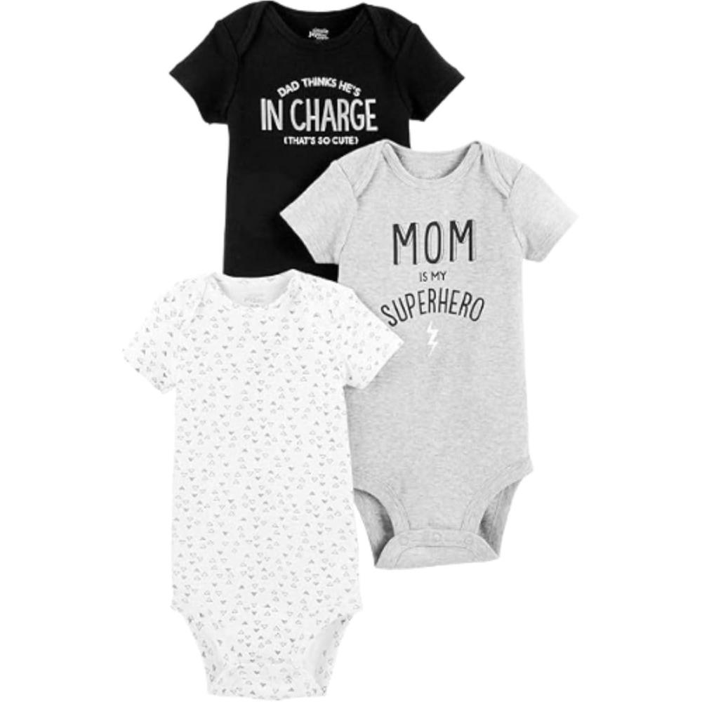 Simple Joys by Carter’s Baby 3-pack Short- Sleeve(Black Text Print/Grey Mom/White)