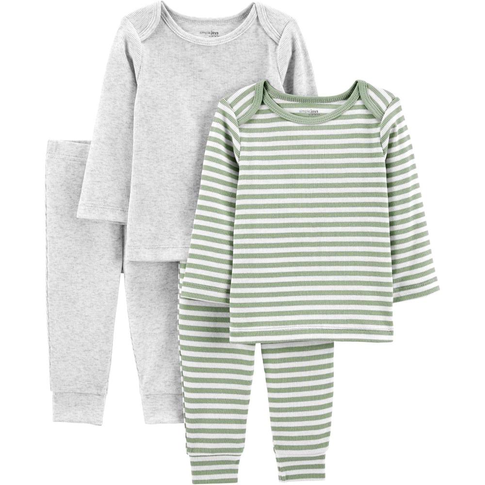 Simple Joys by Carter’s Baby Girls’ 4-piece Textured Set(Grey Heather/Sage Green Stripe)