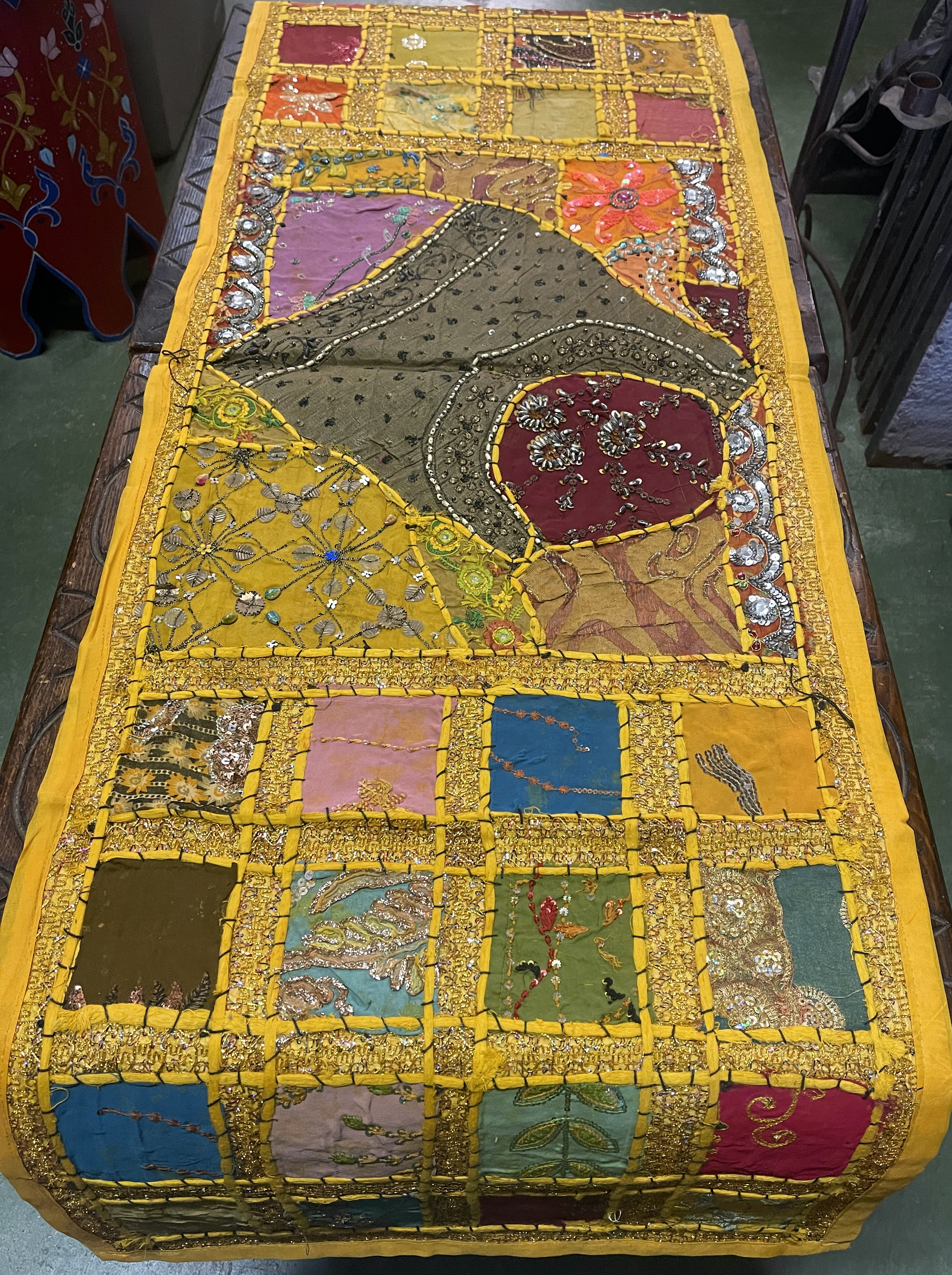 Indian Table Runner Room Décor Cloth Embroidered Patchwork Yellow
