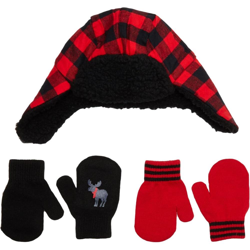 Simple Joys by Carter’s Baby Hat and Mitten Set(Black Red Buffalo Check)
