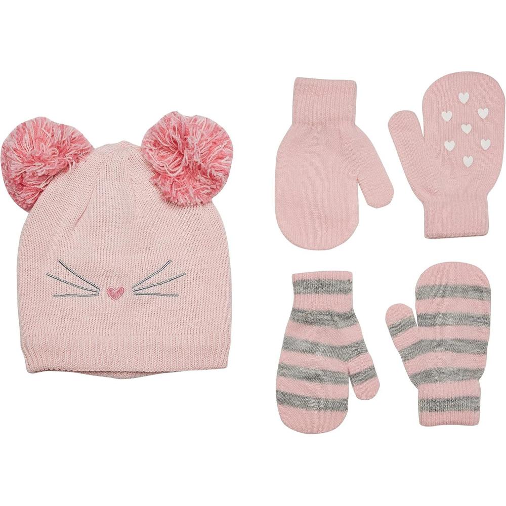 Simple Joys by Carter’s Baby Hat and Mitten Set(Grey Stripe/Pink/Hearts)