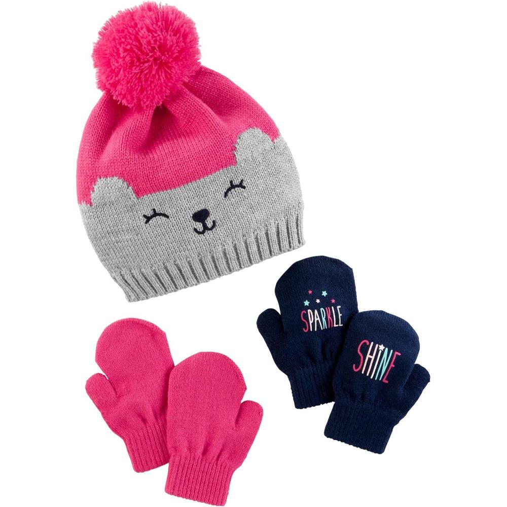 Simple Joys by Carter’s Baby Hat and Mitten Set(Navy/Pink Bear)