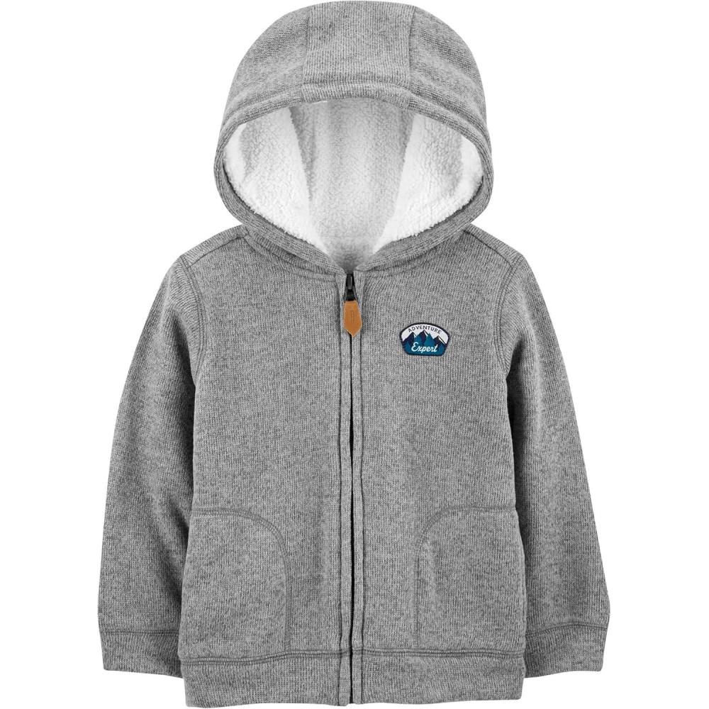 Simple Joys by Carter’s boys Hooded Sweater Jacket With Sherpa Lining(Grey)