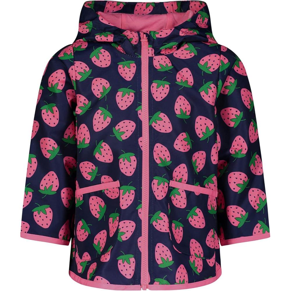 Simple Joys by Carter’s Baby Girls Rain Jacket Raincoat Water-Resistant Hooded Rain Slicker(Navy Strawberry)
