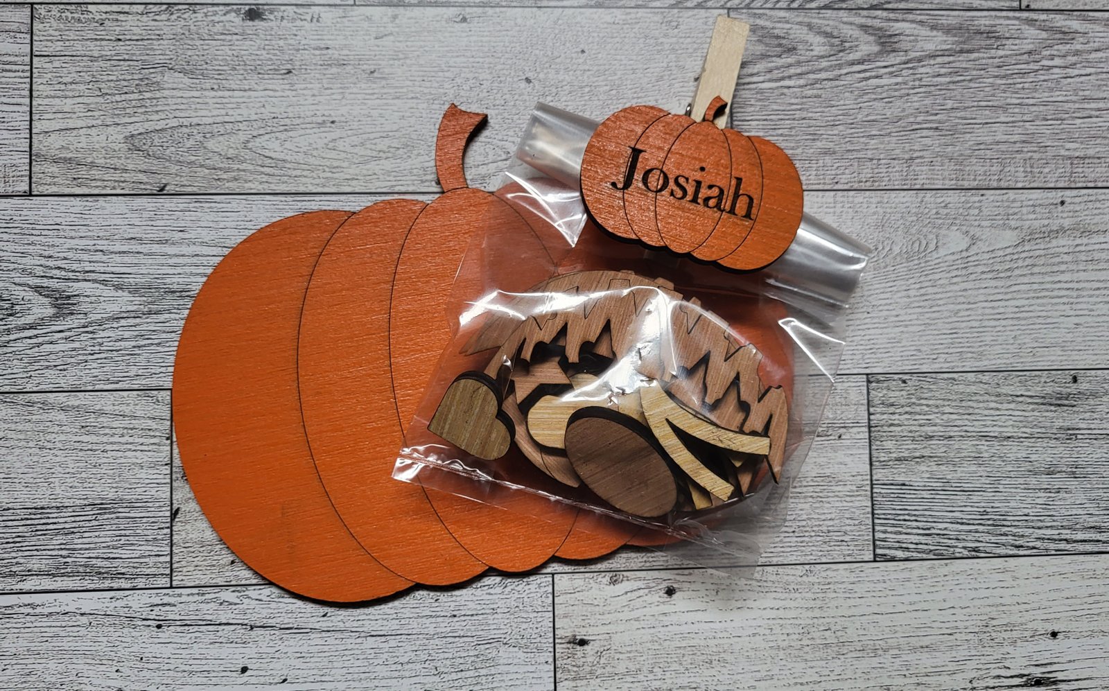 Build Your Own Pumpkin Kit – Customizable Name, Eyes & Mouths (5.6″x4.3″ Mini Pumpkin)