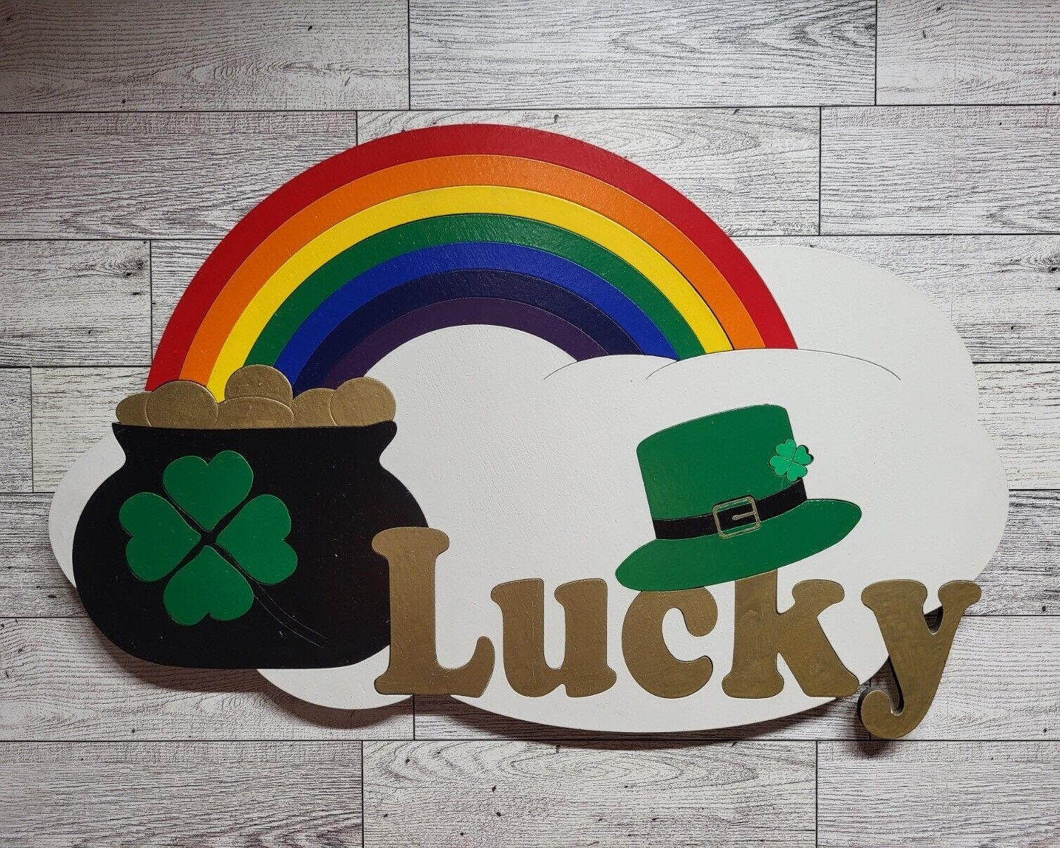 “Lucky” Wall Decor Art – Rainbow, Cauldron of Gold, and Clover Design