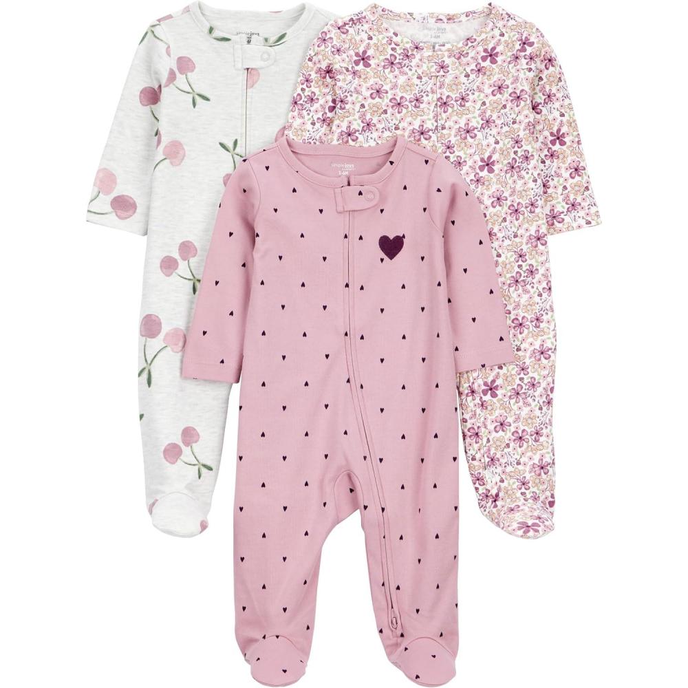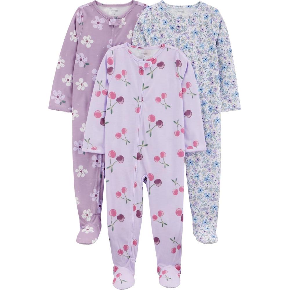 Simple Joys by Carter’s Baby and Toddler Girls’ 3 Pack Loose Fit Polyester Jersey Footed Pajamas(Floral Cherry)