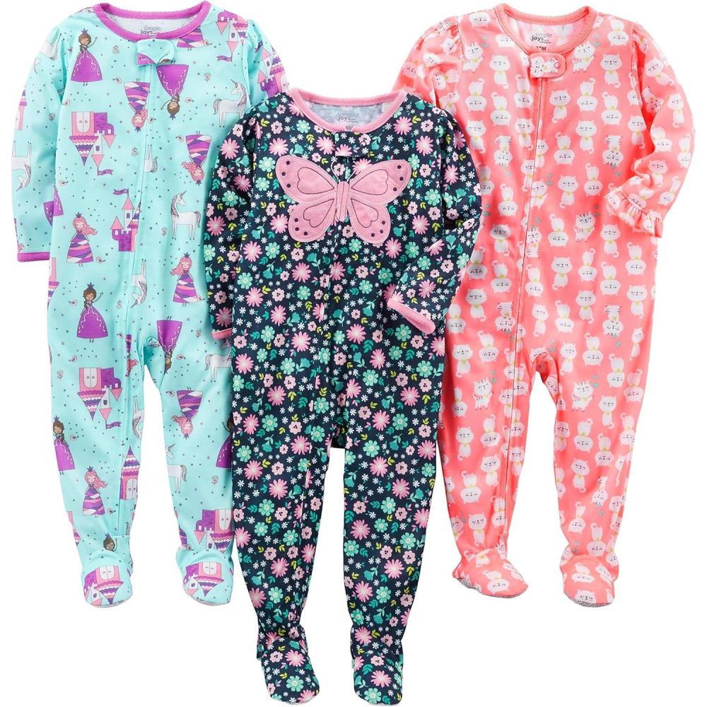 Simple Joys by Carter’s Baby and Toddler Girls’ 3 Pack Loose Fit Polyester Jersey Footed Pajamas(Butterfly/Fairy/Kitten)