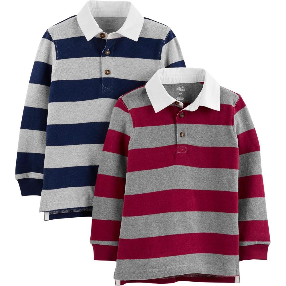 Simple Joys by Carter’s Boys 2-Pack Long-Sleeve Rugby Striped Shirts(Burgundy Navy Stripe)
