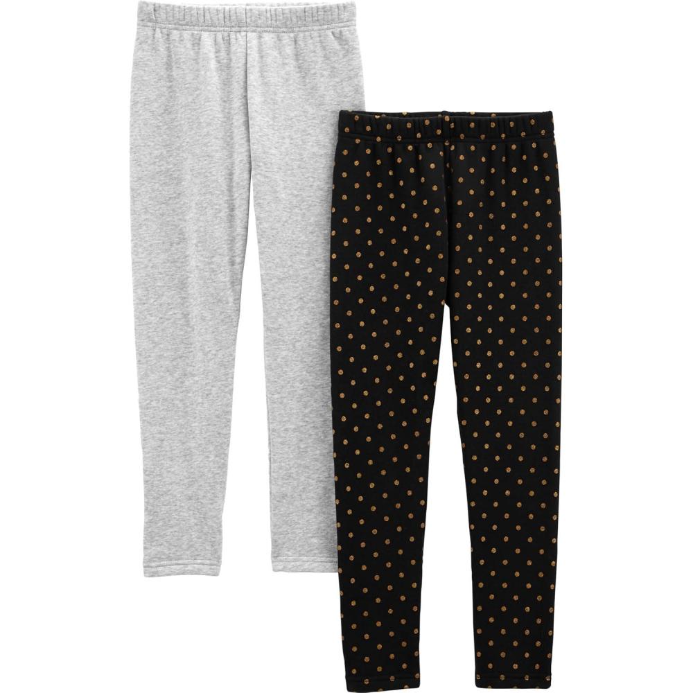 Simple Joys by Carter’s Girls 2-Pack Lightweight Fleece-Lined Leggings(Black Dots/Grey)
